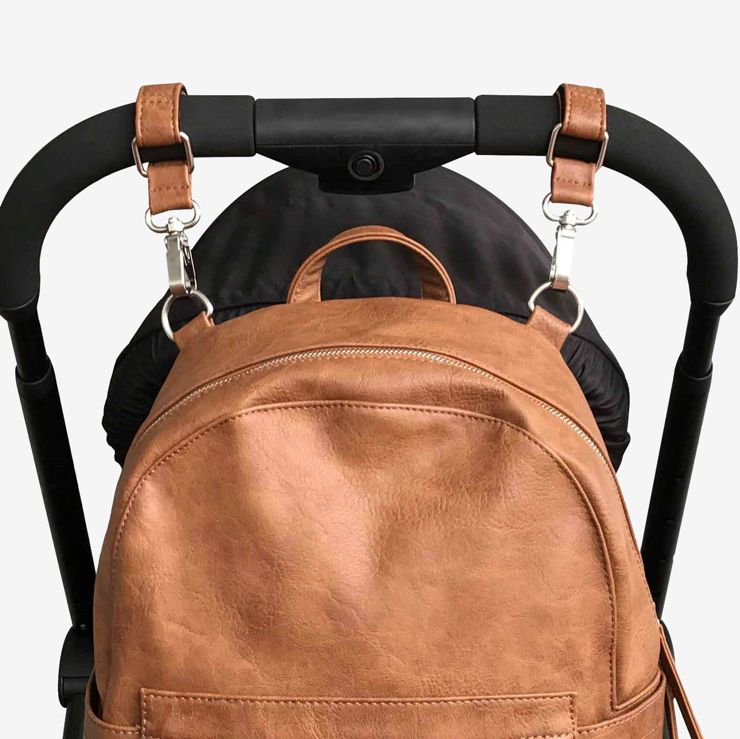 VANCHI Vegan Leather Pram Clips - Tan/ Silver